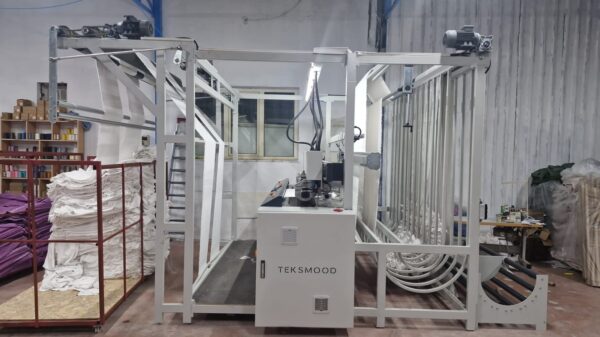 Bu otomatik boy kesim makinesi, havlu kumaşların kesiminde son derece hassas ve etkili bir şekilde kullanılan bir makinedir. Kumaşın çalışma genişliği minimum 25 cm ve maksimum 280 cm’dir. Makinenin elektrik komutları ve hareket işlemleri yapay zeka teknolojisi olan plc kullanılarak yapılmaktadır, bu da yüksek hassasiyet ve etkinlik sağlamaktadır.